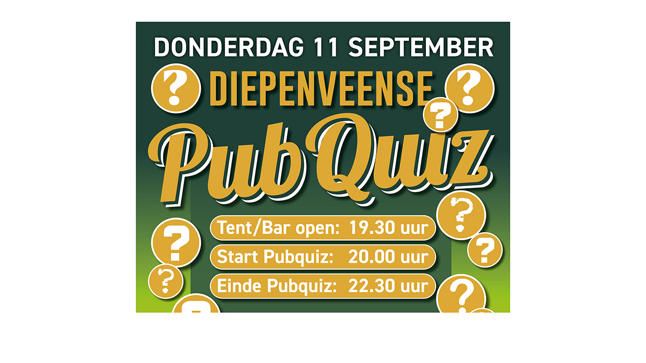Het was een spannende en mooie strijd afgelopen donderdag 11 september in de Diepenveense feesttent. Maar liefst 51 teams streden om mooie prijzen. Iedereen bedankt voor de mooie avond en wellicht tot een volgende pubquiz!